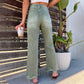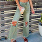 Przyjmij styl casualowo-elegancki z tymi Damskie Szerokie Dżinsy Z Dziurami. Jeansy wykonane z materiału dżinsowego oferują doskonałe dopasowanie do kształtów i cechują się modnymi detalami, takimi jak wycięcia i postrzępione brzegi.